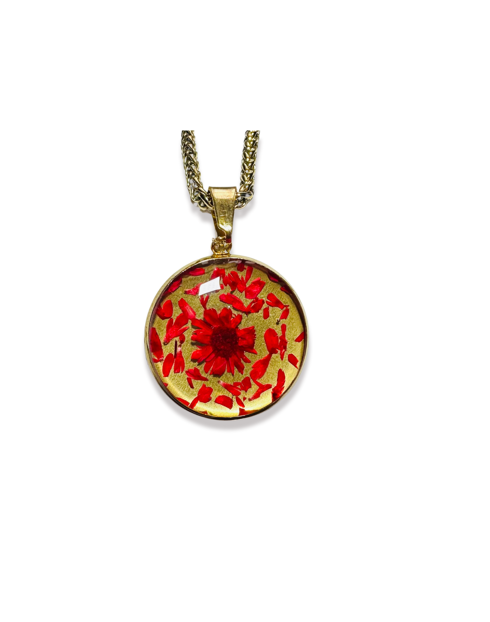 Toutes nos créations en résine sont réalisées à base de véritables fleurs séchées. Chaque fleur est différente et comporte des nuances (taille, couleur, forme…), chaque bijou est artisanal et donc une création unique.